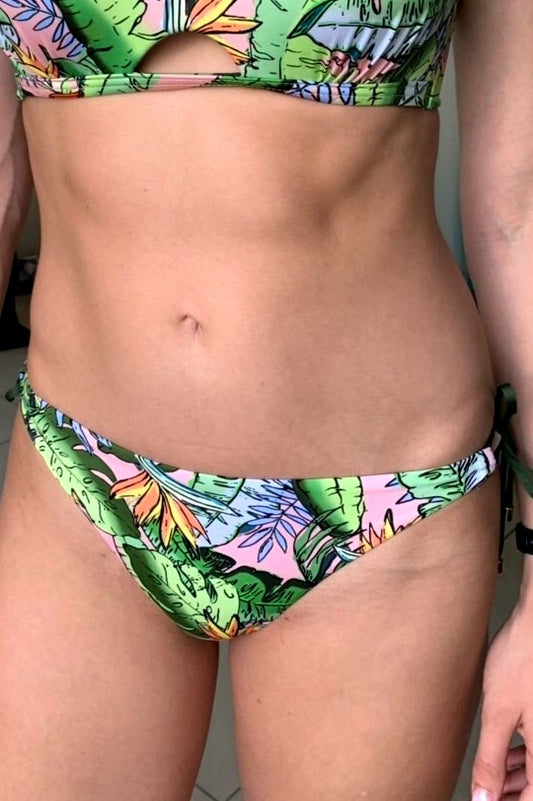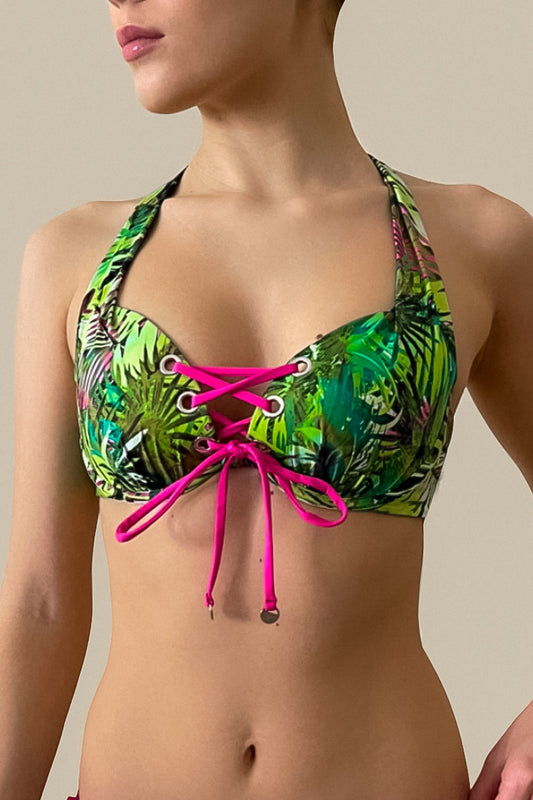 - Для вузьких стегон і широких плечей оптимальний варіант — поєднання принтованих плавок (або в горизонтальну смужку) і однотонного ліфа.