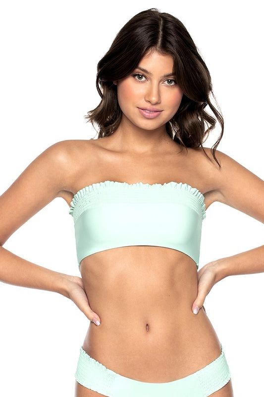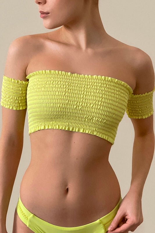 - Бандо. Це різновид роздільних купальників, де ліф більше схожий на топ і не має бретелей. Він не дуже підходить для великих грудей через слабку підтримуючої здібності.