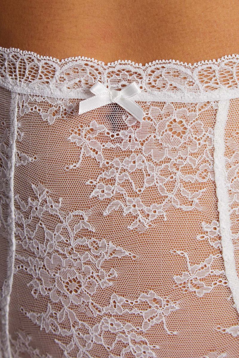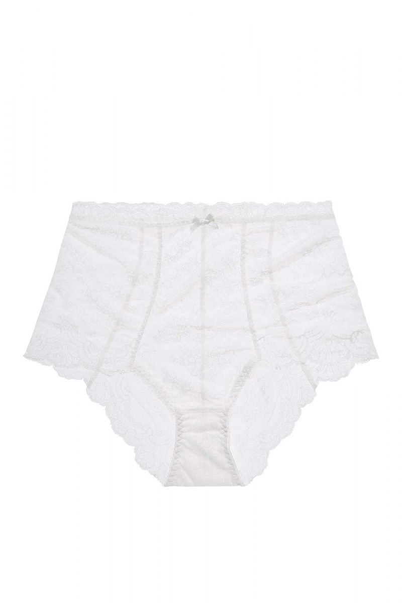 Високі трусики з лайкри з мережива створюють вишукану легку спокусу. Це мереживо прикрашене зубчастим малюнком, що підкреслює пишний та ніжний квітковий візерунок. Трусики з високою талією, що закривають форму до пупка, закривають спину, ідеально підходять для максимального комфорту. Боягузи з високою посадкою підкреслюють силует і витончено підкреслюють вигини спини та талії. Симпатичний бантик на талії високих трусиків надає нотку жіночності та пишноти. Danse des Sens - вишукана жіноча білизна для гламурних моментів.
