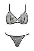 Комплект для гри: бюстгальтер+труси. Бюстгальтер з м'якою трикутною формою чашок без кісточок виконаний з жаккардового мережива, яке виготовлене в Італії. Задня панель і тонкі бретелі регулюються. Застібка – на гачку спереду. Труси - стрінги виконані з жаккардового мережива, яке виготовлене в Італії. Бічні панелі регулюються, що дозволяє досягти ідеальної посадки.