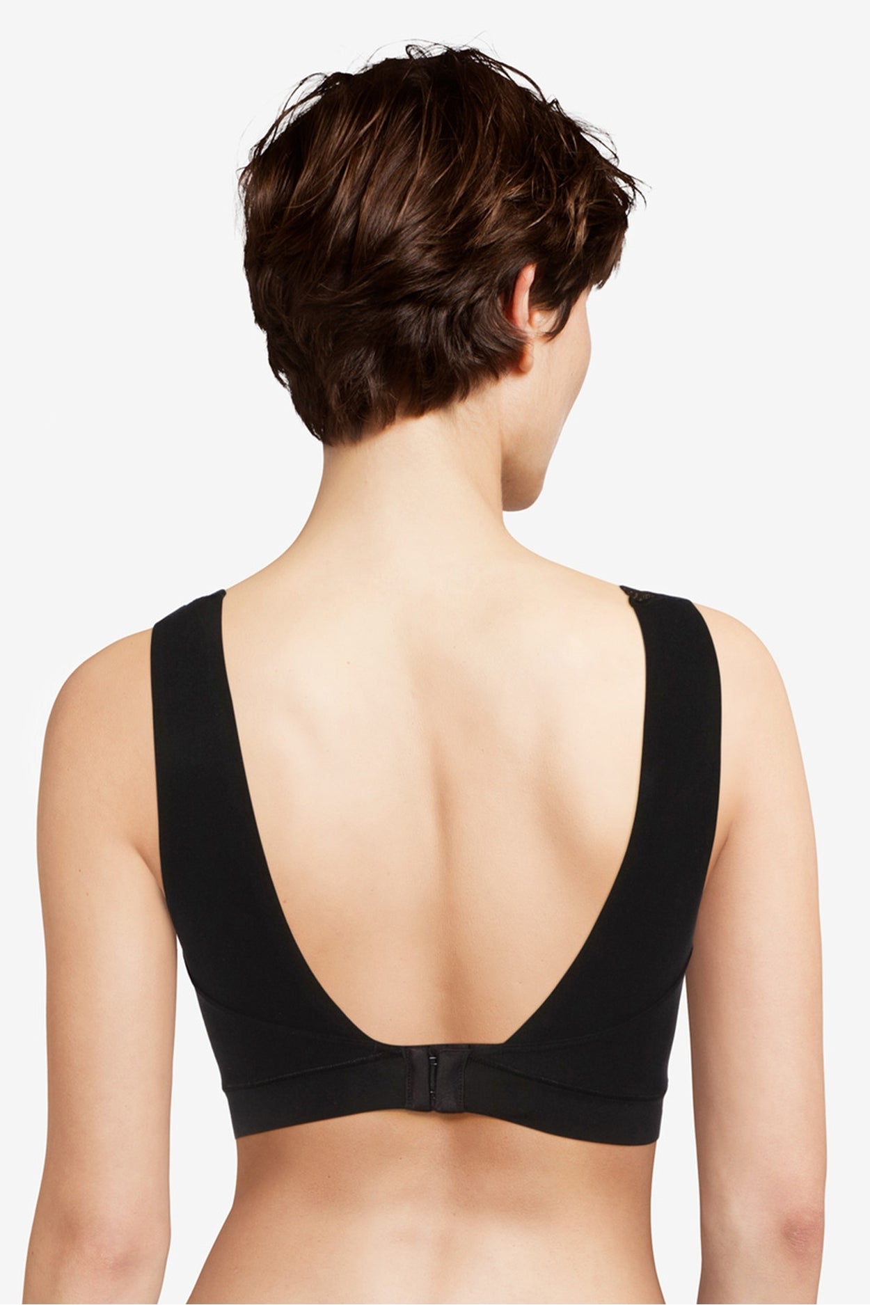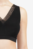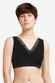 Безшовний бюстгальтер-топ з глибоким V-подібним вирізом декольте декорований ультра плоским мереживом. Без кісточок. Виконаний з м'якого та еластичного матеріалу, який має ефект "другої шкіри". Бюстгальтер оснащений інтегрованими подушками. Комфорт і підтримка Вам гарантовані, незважаючи на відсутність кісточок. Застібка на гачках на задній панелі. Спинка також із глибоким V-подібним вирізом. Ця модель бюстгальтера розроблена спеціально для того, щоб слідувати за рухами Вашого тіла, але залишаючись на місці протягом дня.
