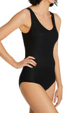 Боді з мікрофібри забезпечує легкість і м'якість на дотик, а також неймовірно еластичну посадку у різних напрямках. Виготовлений з поліаміду, поліестеру та еластану.