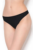 Трусы-стринги женские Marlies Dekkers из тонкой микрофибры в полоску. Особенности: средняя посадка, оригинальный декор с логотипом бренда на нашивке из эко-кожи сзади, хлопковая ластовица с афоризмом "Пробуди свои чувства".