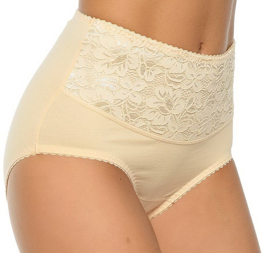 - Лінія талії і животика прикрашена густим мереживом з красивим квітковим мотивом (посилений дуже еластичною тканиною, зшитою знизу).