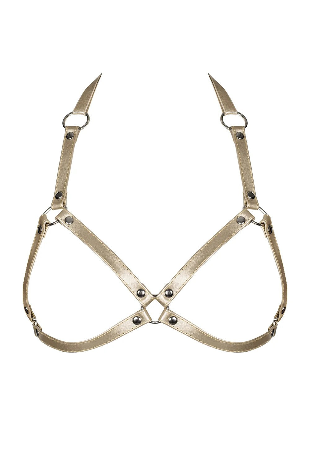 Готові до маси задоволення та великої дози оригінального дизайну? Сьогодні ввечері ви дізнаєтеся, як весело носити сексуальний золотистий джгут A765. Красиві смужки підкреслять ваші груди, а тканина золотистого кольору додасть вам сексуальності і чуттєвості. У цій стилістиці ви не будете виглядати зовсім невинно, але розбудите свою внутрішню спокусницю... Стимулюючий зовнішній вигляд, дивовижно захоплюючий вигляд і одночасно гарантія комфорту носіння справлять на вас справжнє враження.