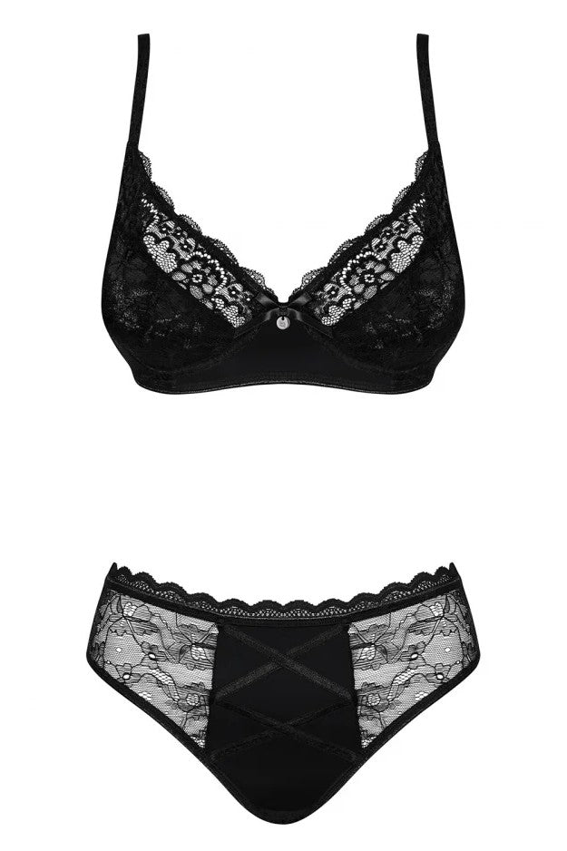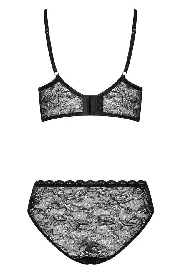 Чорний мереживний комплект нижньої білизни Obsessive