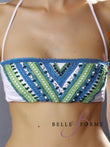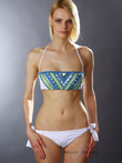 Яркий купальник Raffaela D'angelo с лифом-бандо выполнен из эластичной ткани с интересным комбинированным принтом - тонким макраме и разноцветными самобытными камнями. Такая форма лифа подчеркнет естественную красоту ваших форм и немного приподнимет грудь, сзади и вокруг шеи фиксируется тонкими завязками. Небольшие плавки слипы с заниженной линией талии дополнены по бокам завязками, которые позволят регулировать уровень посадки на бедрах. Обратите внимание и на платье с таким же самобытным принтом.