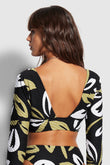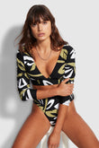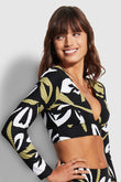 Модель Seafolly Laguna Long Sleeve Crop Sunvest має сміливий абстрактний квітковий принт на м’якій еластичній тканині. Цей топ бікіні з довгим рукавом ідеально підходить для літа для додаткового захисту від сонця та стилю.