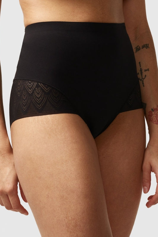 - Для коррекции живота и талии используют специальное корсетное белье. Трусики с высокой талией также предназначены для утяжки этой области. А грация или полуграция с утяжкой живота не только скроет несколько лишних сантиметров на талии, но и поможет поддерживать красивую осанку и создать утонченный силуэт.