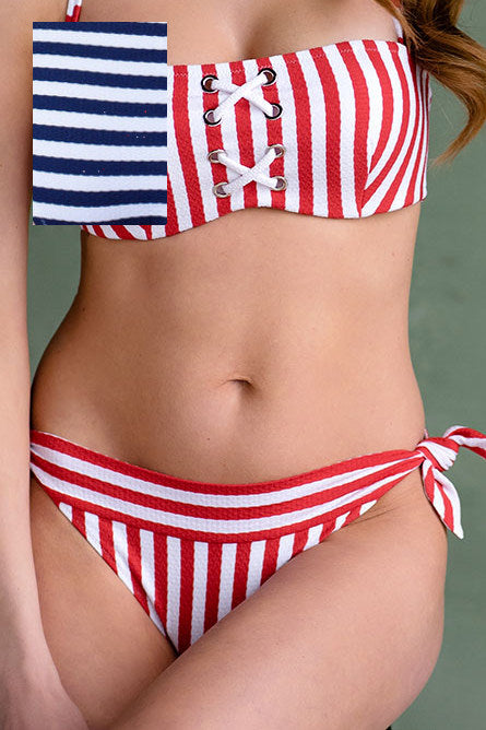 - Бандо. Это разновидность раздельных купальников, где лиф больше похож на топ и не имеет бретелей. Он не очень подходит для большой груди из-за слабой поддерживающей способности.