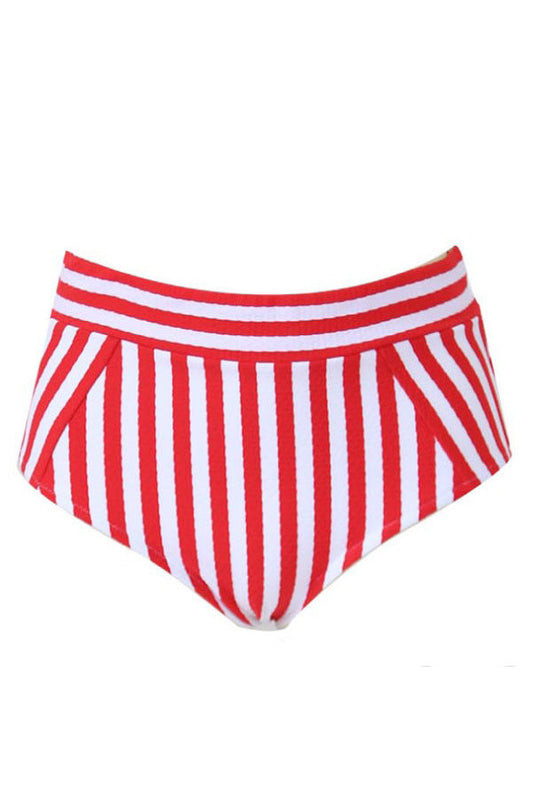 - Для узких бедер и широких плечей оптимальный вариант — сочетание принтованных плавок (или в горизонтальную полоску) и однотонного лифа.