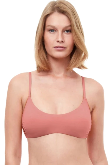 - Бандо. Это разновидность раздельных купальников, где лиф больше похож на топ и не имеет бретелей. Он не очень подходит для большой груди из-за слабой поддерживающей способности.