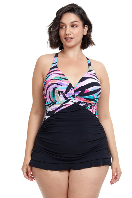 - Свим-дресс. Платье-купальник выглядит настолько необычно и привлекательно, что станет удачной покупкой для стройных и пышных женщин. Если нужно скрыть ягодицы и бедра — это лучший выбор.