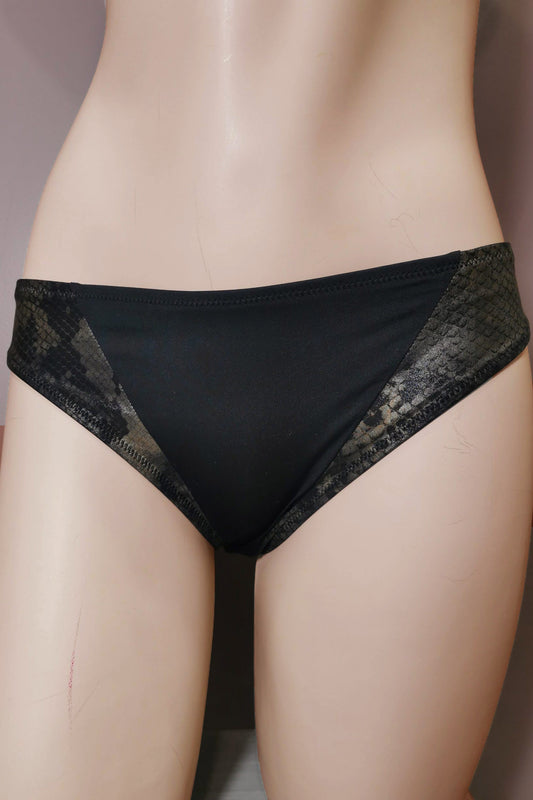 - Для узких бедер и широких плечей оптимальный вариант — сочетание принтованных плавок (или в горизонтальную полоску) и однотонного лифа.