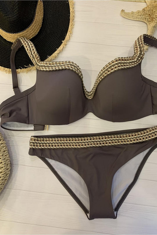 - Бандо. Это разновидность раздельных купальников, где лиф больше похож на топ и не имеет бретелей. Он не очень подходит для большой груди из-за слабой поддерживающей способности.