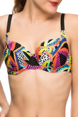 Купальный бюст с мягкой чашкой Antigel Lise Charmel из коллекции La Maasai из тонкой быстросохнущей ткани с эксклюзивным принтом с элементами африканских масок. Бюст имеет комфортные регулируемые бретели с функцией перестегивания на спинке.