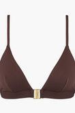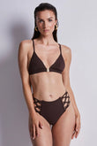 Благодаря низкому соблазнительному декольте, треугольный бикини-топ Muse является современным, мягким и легким. Он имеет очень необычный дизайн с переплетенными полосками в стиле макраме сзади, подсвеченными золотистыми трубками, которые добавляют оттенок мерцания. Уникальный стиль с переплетенными полосками в стиле макраме, украшенными маленькими золотыми трубочками.