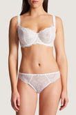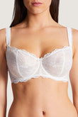 Утонченный женственный бюстгалтер модельной линии Danse des Sens от французского бренда Aubade. Мягкие закрытые чашки на косточках из нежного кружева Calais Leavers с тюлевой подкладкой. Широкие удобные регулируемые бретели с кружевной тесьмой. Закругленная спинка. Деликатная отделка. Застежка на крючки. Почувствуйте себя комфортно в этом кружевном великолепии.