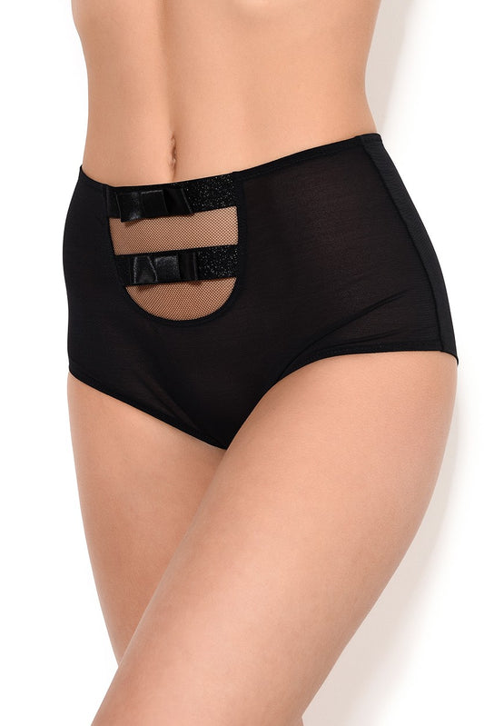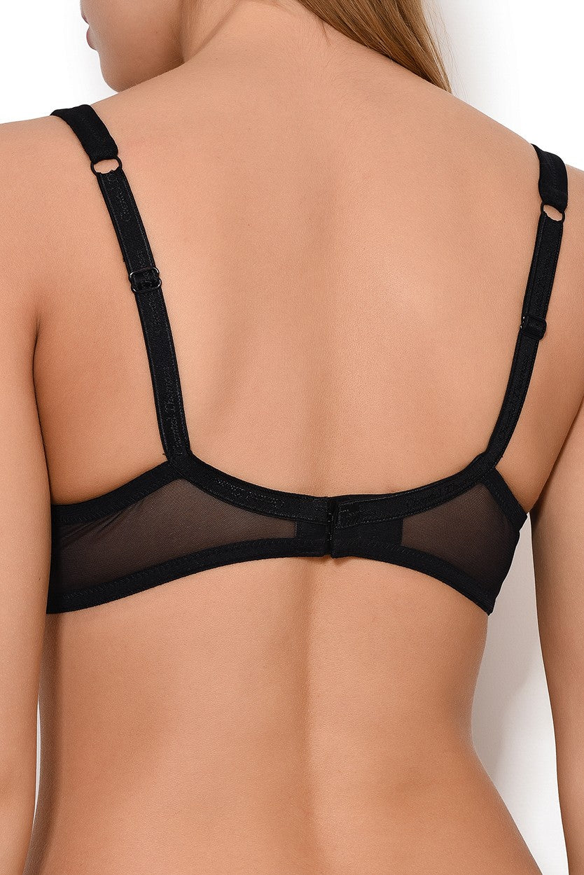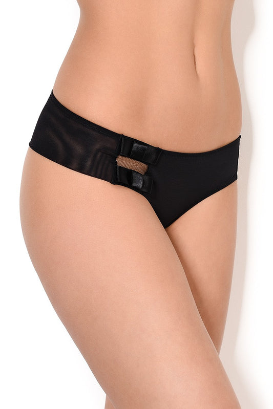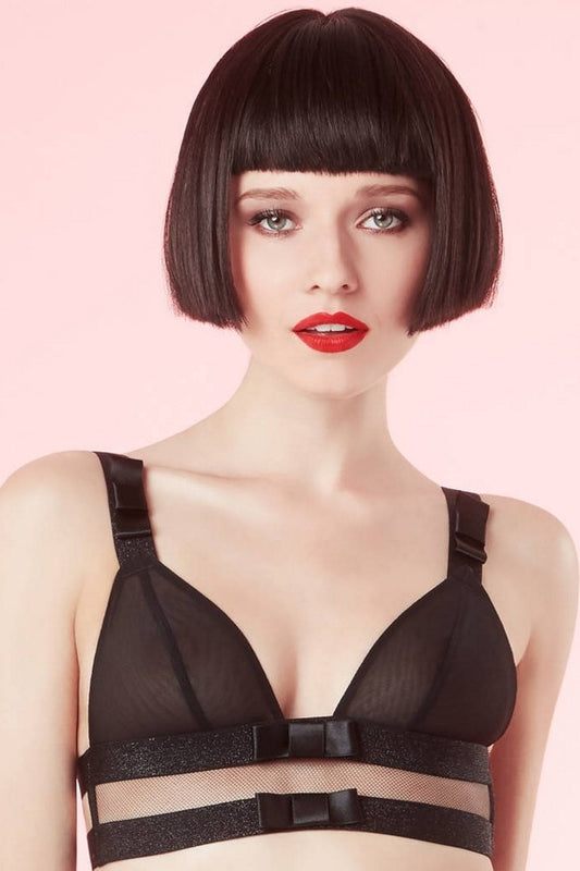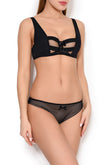 Бюстгальтер у формі балконет, на кісточках, з ущільненими бічними частинами чашок, що переходять у бретель. Додаткова кісточка на боковинах для найкращої посадки. Середня частина із сітчастої тканини, декорована двома щільними смужками з витонченим блиском та атласними бантиками по центру. Регульовані бретелі з логотипом "Chantal Thomass".
