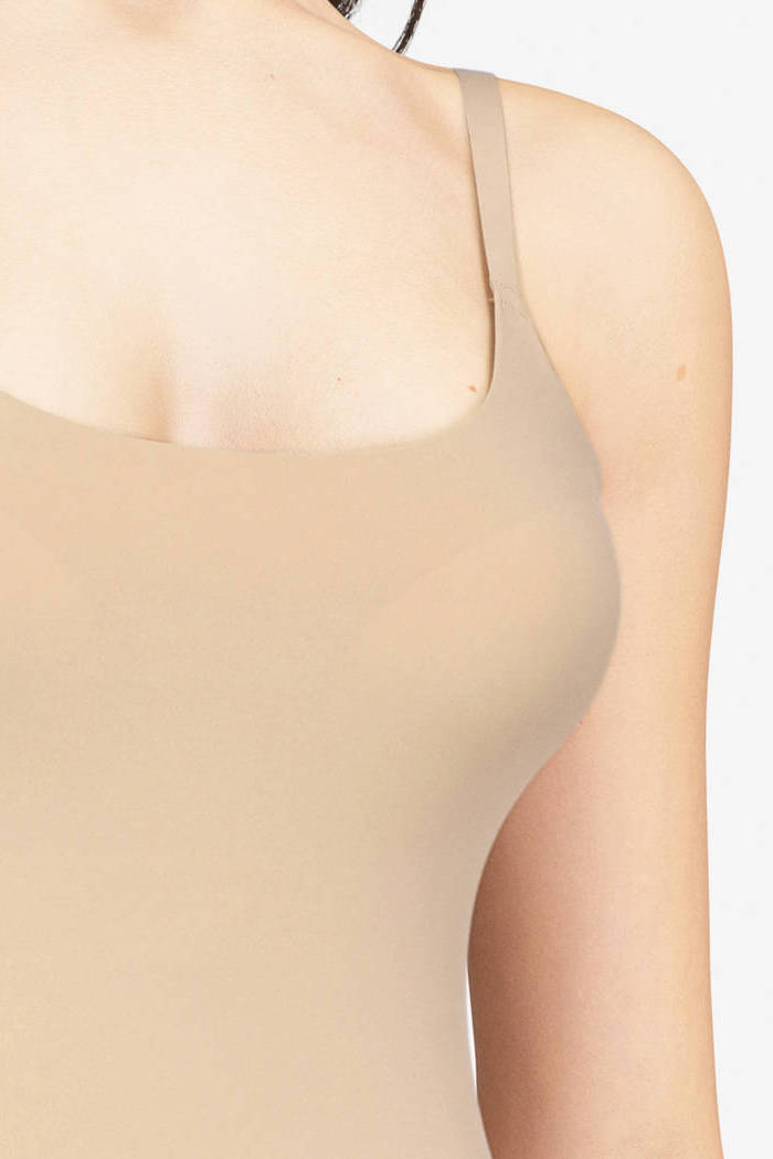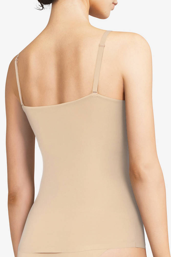 Майка на тонких регулирующихся бретелях с интегрированными подушками; выполнена из мягкого и эластичного материала, который обладает эффектом "второй кожи". Модель разработана специально для того, чтобы следовать за движениями Вашего тела, но при этом оставаясь на месте на протяжении дня. Регулирующиеся бретели можно перестегнуть крест-на-крест.