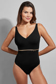 Верная ставка в коллекциях купальников Empreinte, сплошной купальник с V-образным вырезом в космической тематике украшен элегантным золотистым оттенком, определяющим силуэт. V-образный вырез и прямая спина подчеркивают и формируют бюст, одновременно обеспечивая идеальную поддержку чашечкой G. Регулируемые лямки с изменяющейся шириной обеспечивают еще большую поддержку фигуры, невероятный комфорт и подъем. Сплошной купальник с V-образным вырезом – вневременный элегантный и современный, с красивой анимацией мелких золотых жемчужин черного цвета. Его ткань, содержащая волокно Lycra® Beauty, устойчива к хлору, соли и поту.