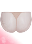 Трусики слипы. Передняя часть гладкая, задняя, декорированная цветочным кружевом с лазерной отделкой краев.