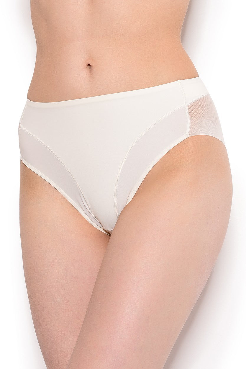 Трусы корректирующие Janira эксклюзивного дизайна. Особенности: средняя посадка, передняя часть из плотной микрофибры с эффектом "второй кожи", внутренняя подкладка, задняя часть из плотного эластичного тюля, бесшовная обработка контура для незаметности под одеждой, на спинке уплотненный пояс для подчеркивания талии.