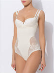 Корректирующее боди, формируещее фигуру и утягивающее на один размер. Выполнено из кружевного эластичного материала. Передняя деталь и задняя до линии талии на дополнительной подкладке. Лиф без каркасов. Конструкция модели такова, что ее можно носить под свой любимый бюстгальтер. Бретели открытого лифа регулируются сзади. Модель не выделяется под одеждой, к тому же имеет очень красивый, эстетичный вид. Плоские, невидимые швы. Антибактериальная ластовица. Застежка снизу на крючки. Идеальный силуэт под самой обтягивающей одеждой даже в летний зной!