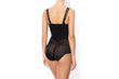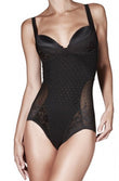 Корректирующее боди, формируещее фигуру и утягивающее на один размер. Выполнено из кружевного эластичного материала. Передняя деталь и задняя до линии талии на дополнительной подкладке. Лиф без каркасов. Конструкция модели такова, что ее можно носить под свой любимый бюстгальтер. Бретели открытого лифа регулируются сзади. Модель не выделяется под одеждой, к тому же имеет очень красивый, эстетичный вид. Плоские, невидимые швы. Антибактериальная ластовица. Застежка снизу на крючки. Идеальный силуэт под самой обтягивающей одеждой даже в летний зной!