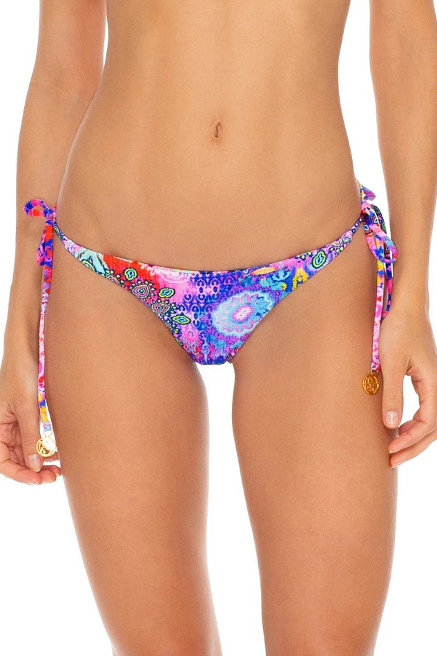 Бесшовные плавки бикини бразильского кроя. Завязки по бокам для регулируемого кокетливого кроя