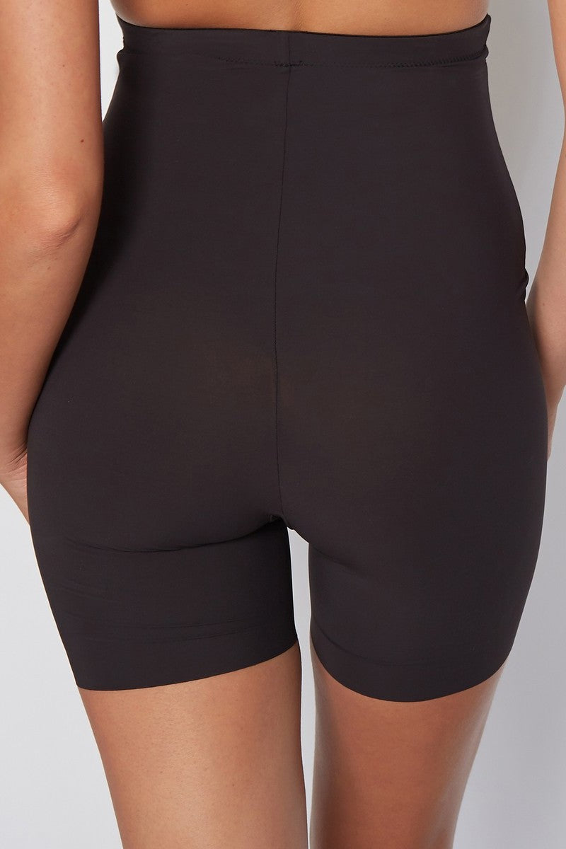 Панталоны с высокой талией выполнены из "невесомой" микрофибры и предназначены для визуальной коррекции области талии, бедер и ног. Бесшовная передняя панель в области талии и живота дублирована для достижения необходимого эффекта; задняя панель дублирована по линии талии. Пояс по всей окружности дублирован плотной широкой тесьмой с силиконовой дорожкой. Хлопковая ластовица. "Необработанный" нижний край ног.