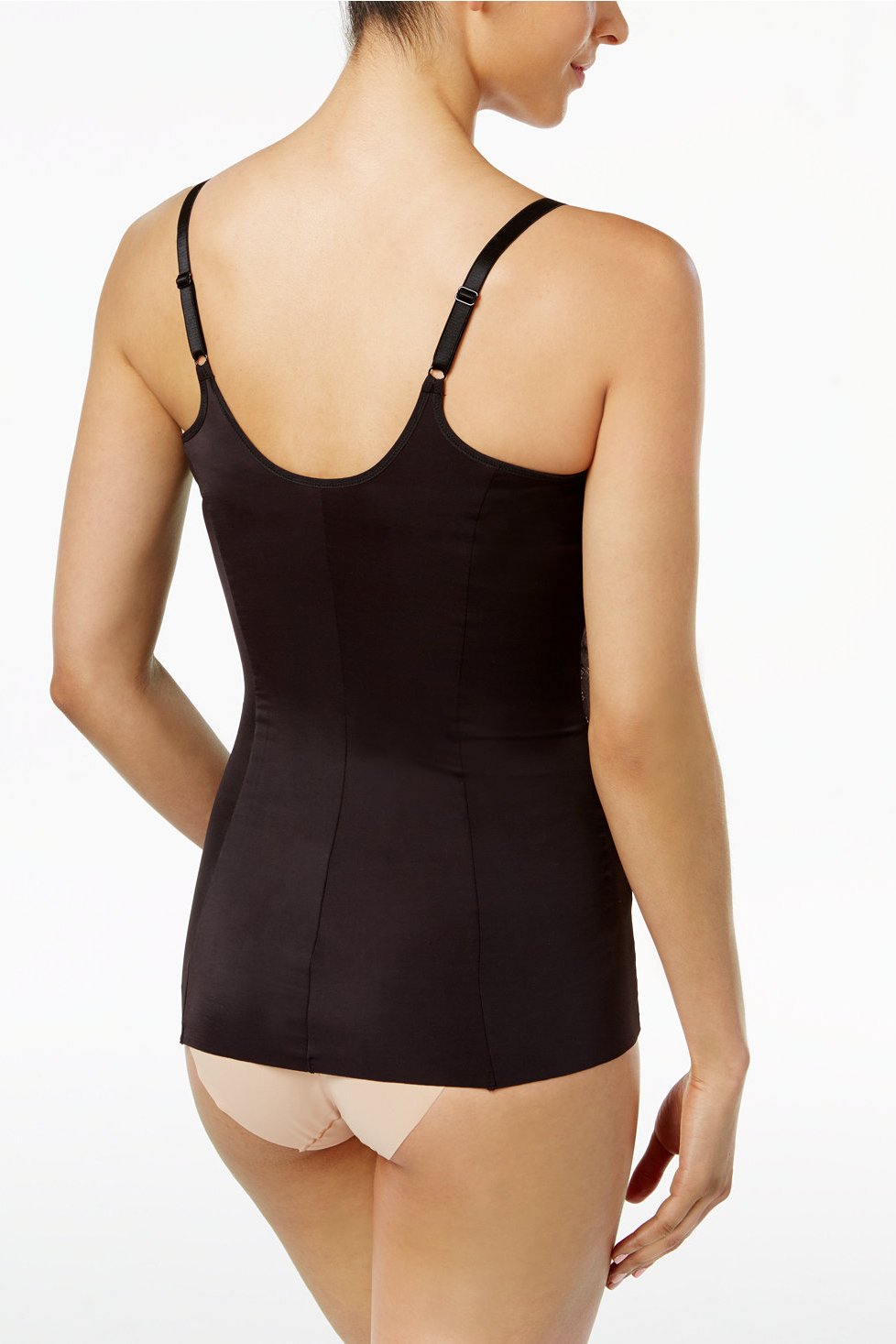 Бесшовный, неэлектризующийся, выплоненный из "невесомого" материала топ, который визуально откорректирует Ваш торс. Открытая область груди позволяет носить Ваш бюстгальтер. Кружевные вставки в области подмышек, дублированные тюлем, откорректируют проблемные участки. Передняя панель, полностью дублированная тюлем, с плоскими швами сделает Ваш живот(визуально) более плоским. Задняя панель со швами - чтобы улучшить "прилегание". Регулирующиеся бретели. Плоская отделка нижнего края. Округлая спинка.