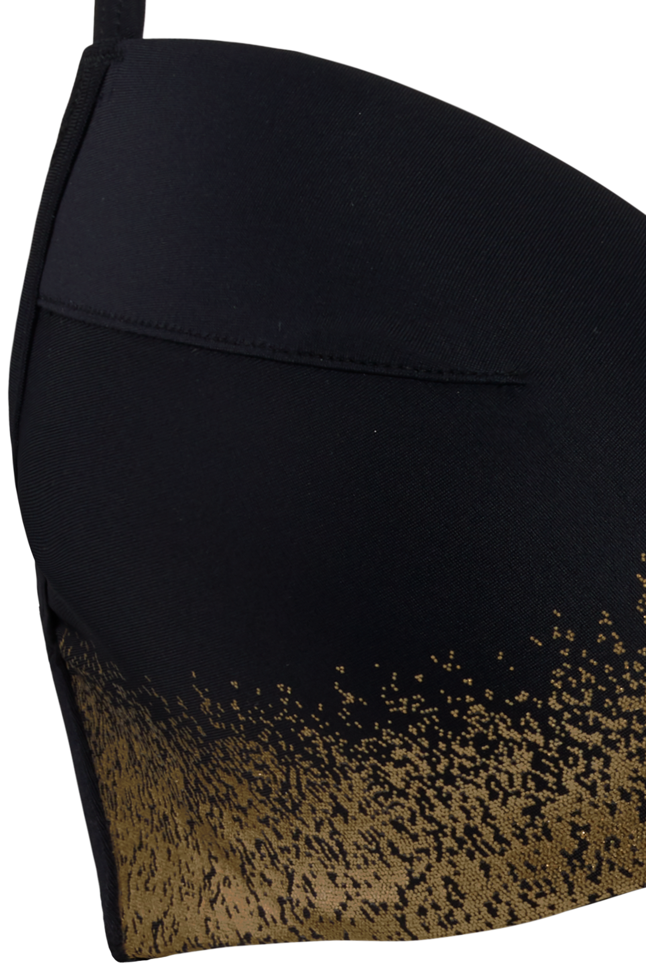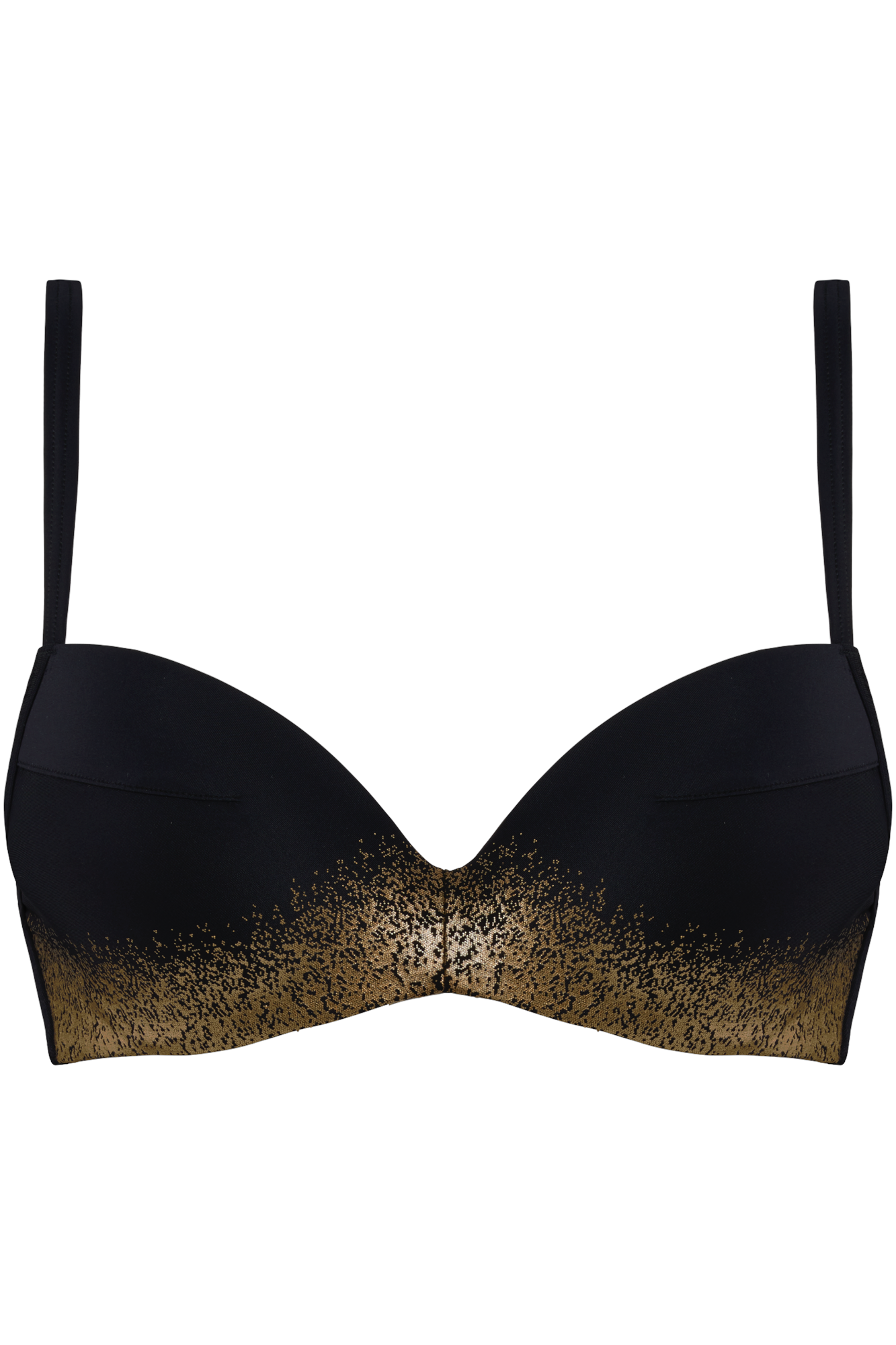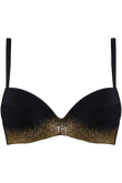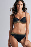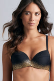 Бюстгальтер - пуш ап с интегрированными подушками на косточках. Чашки покрыты микрофиброй, которая быстро сохнет, а золотое напыление обладает защитой от пляжного воздействия. Боковые панели дублированы и оснащены косточками. Регулирующиеся бретели.