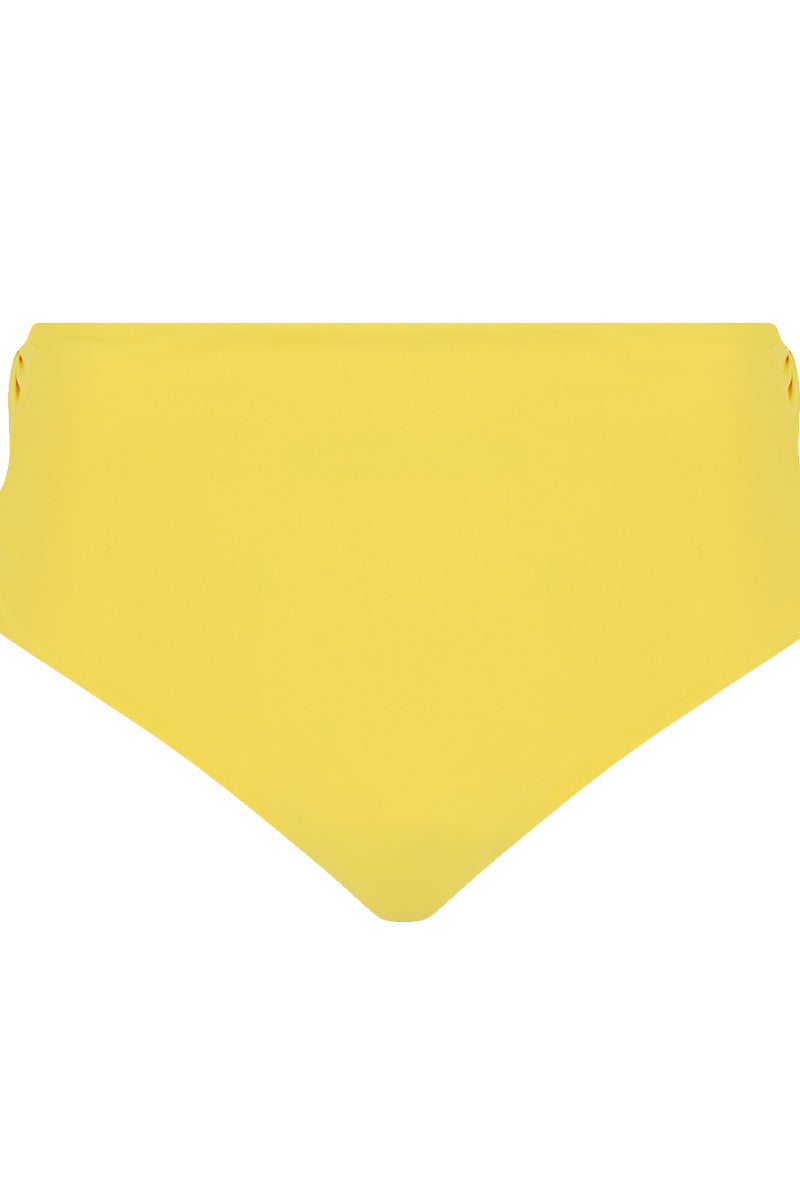 Трусы с высокой талией с высокой посадкой. Двухсторонние: желтые и оранжевые. Боковые панели - с вырезами.