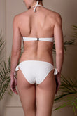 Молодежные плавки из фактурной ткани с заниженной линией талии на поясе переходящем в завязки.