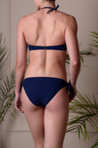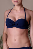 Эффектный уплотненный бюст-бандо пуш-ап. Съемные тонкие завязки через шею, металлическая пряжка на спине.
