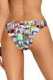 Плавки средней посадки. Металлическая золотистая фурнитура гиппоаллергенна и устойчива к коррозии.