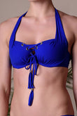 Купальник от немецкого бренда Toccata. Чашки бюстгальтера формованные на косточках, по центру украшены люверсами со шнуровкой. Бюстгальтер фиксируется на теле с помощью завязок. Металлическая фурнитура устойчива к воздействию коррозии.
