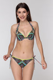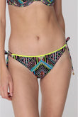 Плавки-бикини с тонкими завязками по бокам визуально облегчают фигуру, есть дополнительный подклад. Купальник легко усадить на фигуру благодаря завязкам.