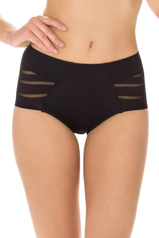 • Подтянуть область бедер и ягодиц можно с помощью утягивающих трусиков, шорт или панталон. Упругие и эластичные материалы, из которых изготовлено белье, легко стягивает тело, благодаря чему визуально уменьшаются объемы. Бесшовные трусы с утяжкой для ягодиц не выдают себя под одеждой, поэтому их можно смело надевать под любые наряды, даже под облегающее платье.