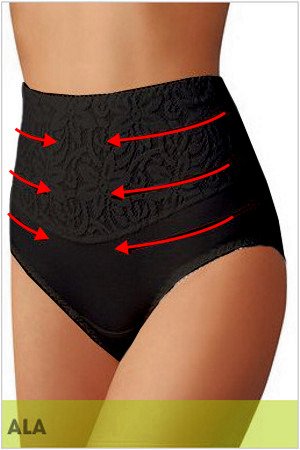 • Для коррекции живота и талии используют специальное корсетное белье. Трусики с высокой талией также предназначены для утяжки этой области. А грация или полуграция с утяжкой живота не только скроет несколько лишних сантиметров на талии, но и поможет поддерживать красивую осанку и создать утонченный силуэт.
